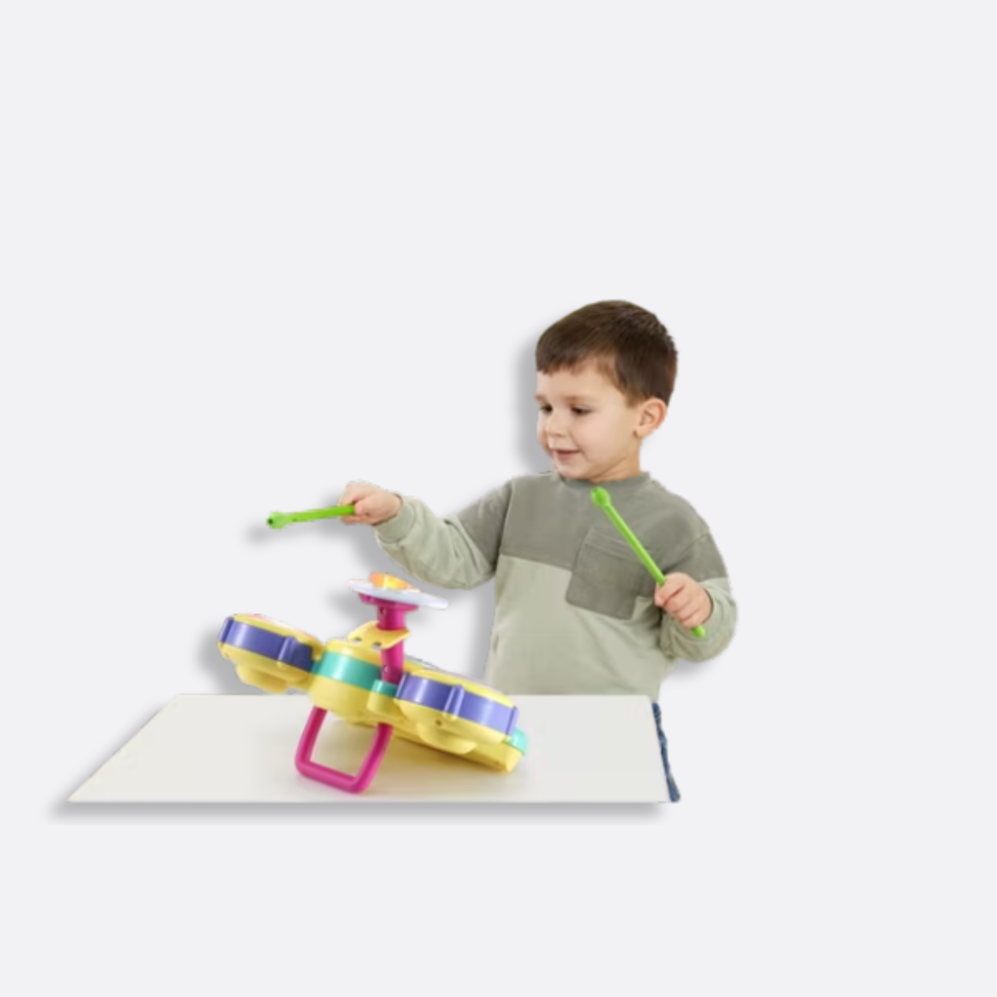 ¡Diviértete con Bluey! Toca tus canciones favoritas del programa en diferentes estilos musicales o haz un solo de batería con sonidos y efectos acústicos, electrónicos, divertidos o de animales. Los pads y el platillo se iluminan al tocarlos.